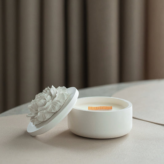 Peony - Embraced Scented Coconut Wax Candle with Wood Wick in Gypsum Jar