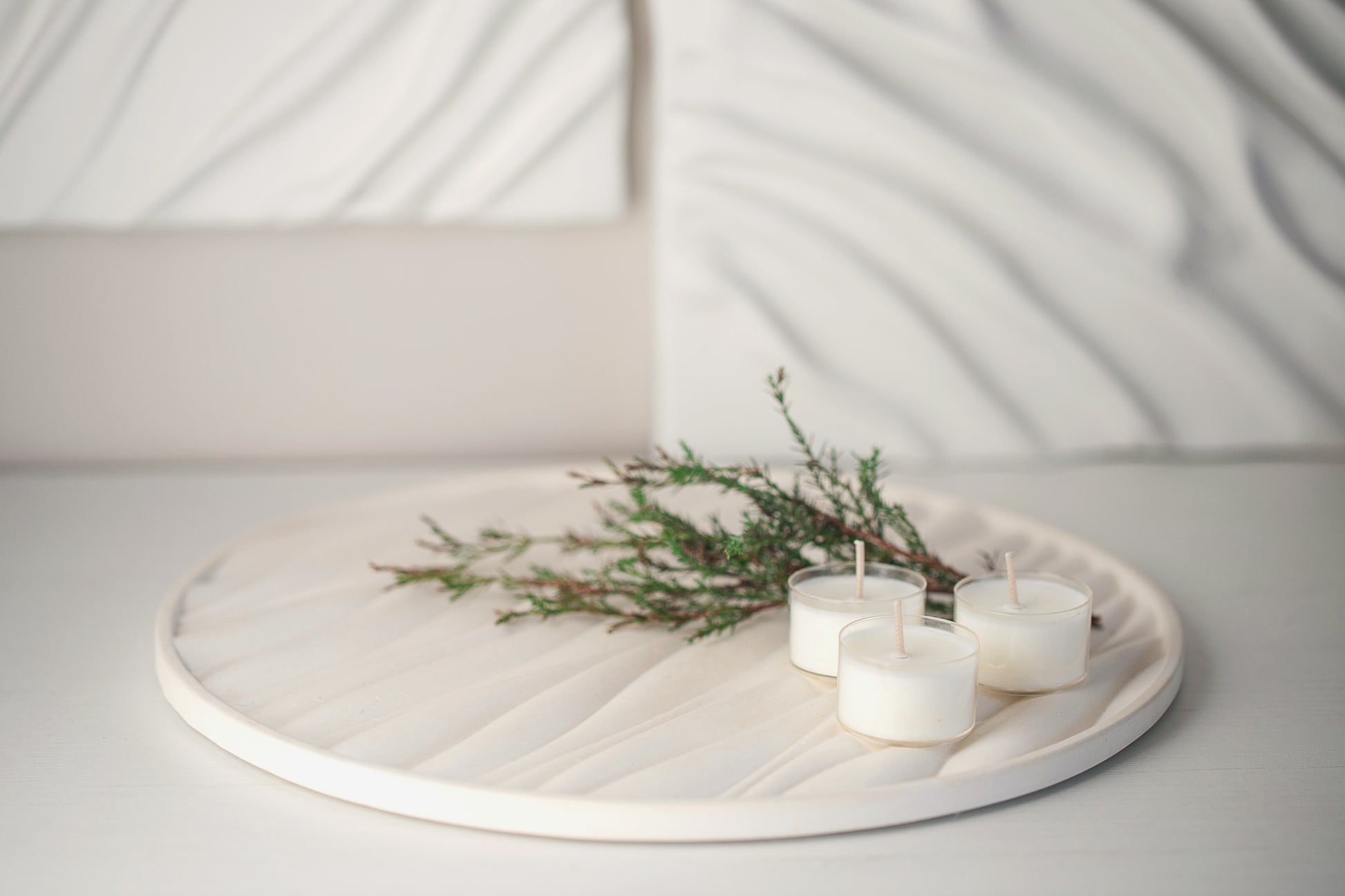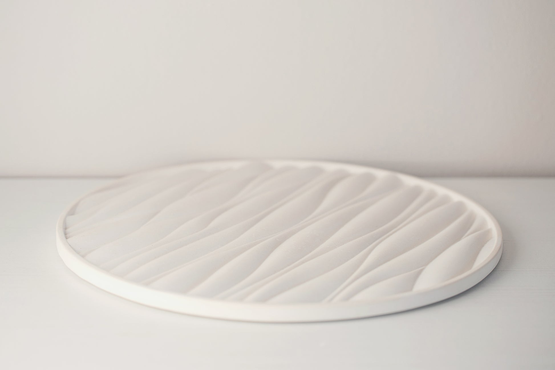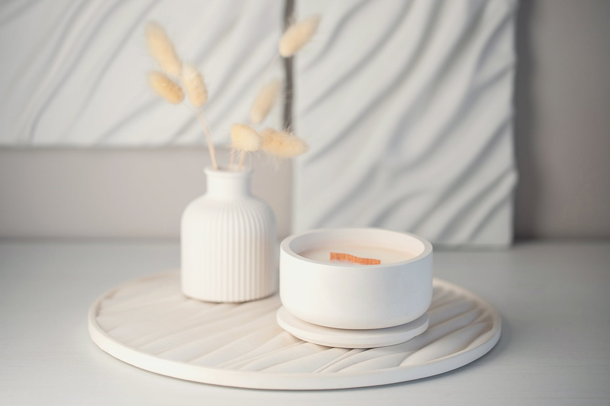 Gypsum Tray with Sand Waves Relief - Versatile Elegance for Candles, Fragrances, and Jewelry