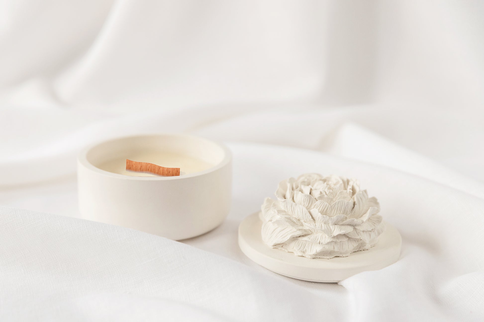 Peony - Embraced Scented Coconut Wax Candle with Wood Wick in Gypsum Jar